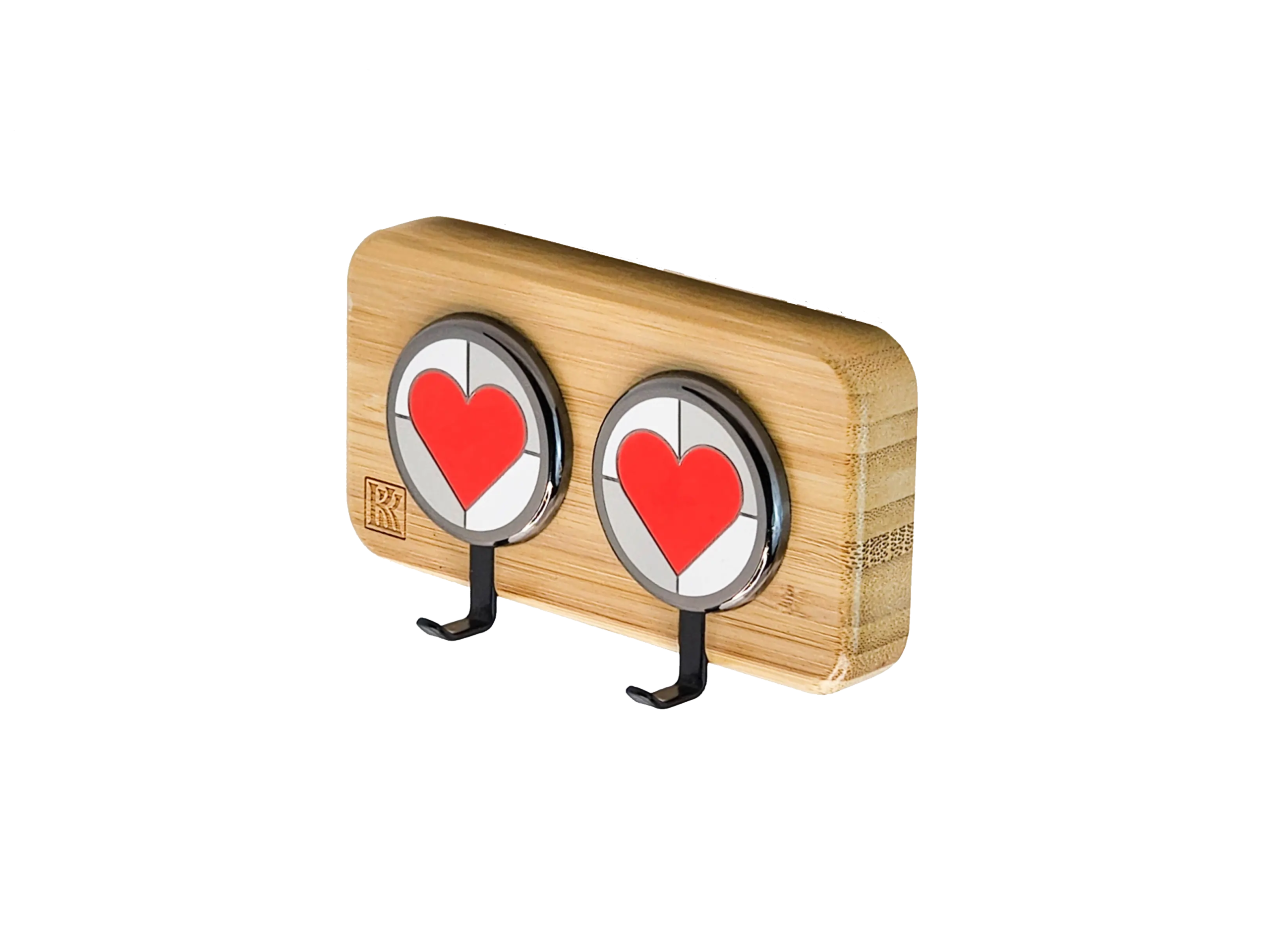 Heart Accent Black – Bamboo 2‑Hook Entryway Wall Hook | KK HOOK