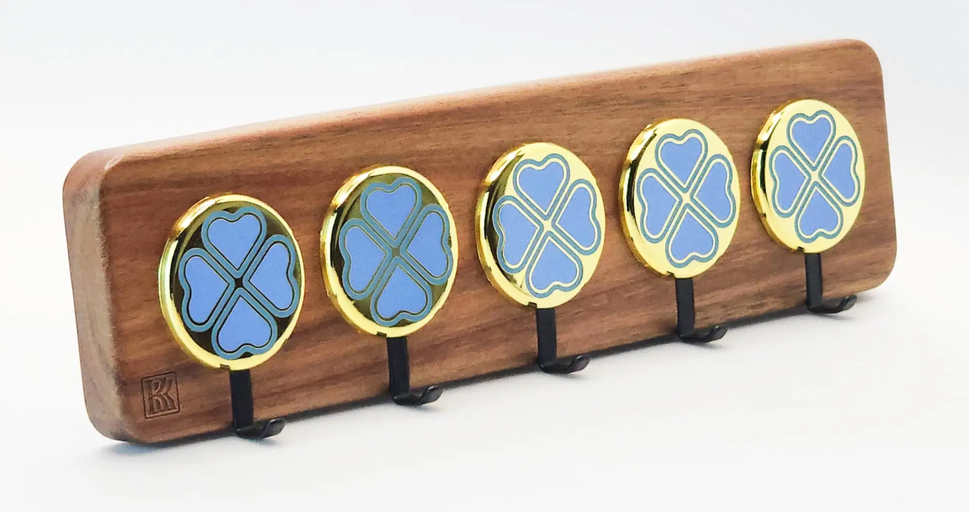 Clover Accent Blue – Acacia 5‑Hook Wall Hanging Decoration | KK HOOK